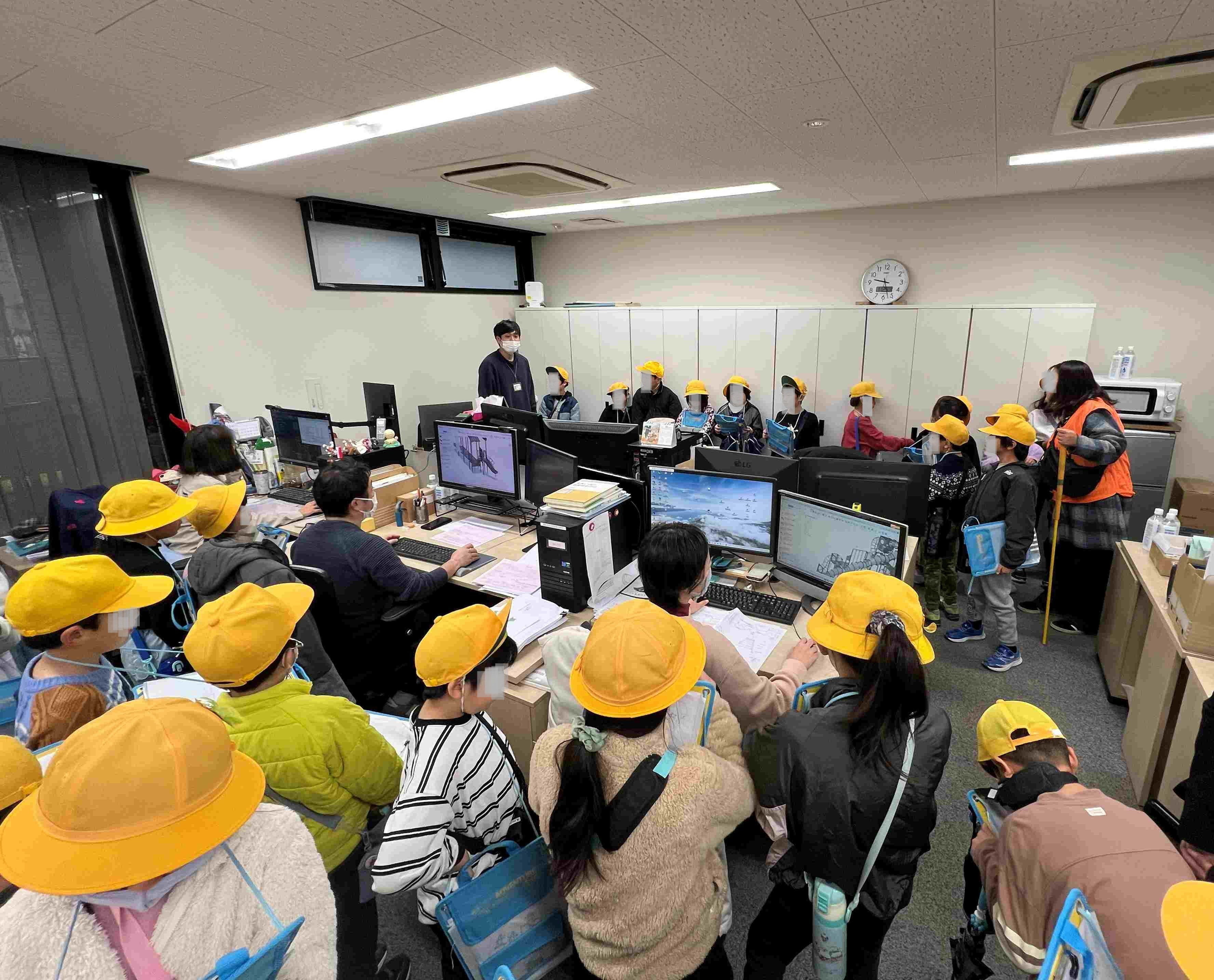 事務所内では、遊具設計や遊具デザインの状況をご覧いただき、身近にある遊具を設計している様子に目を輝かせながら観ていただきました。